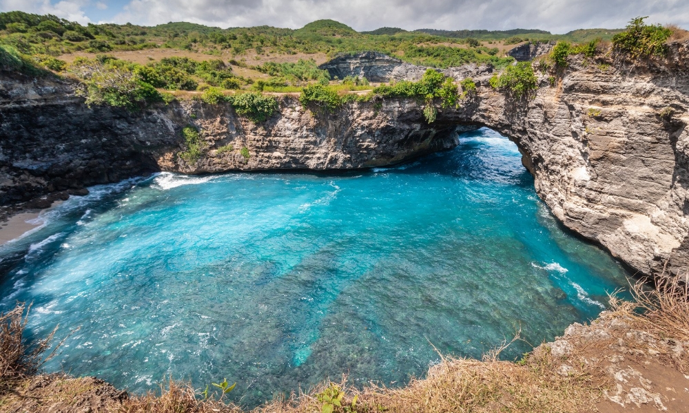 Just a short walk from Angel’s Billabong, we arrive at Broken Beach (Pasih Uug), one of Nusa Penida’s most iconic natural wonders. This stunning circular cove with a massive rock arch was formed naturally over thousands of years.